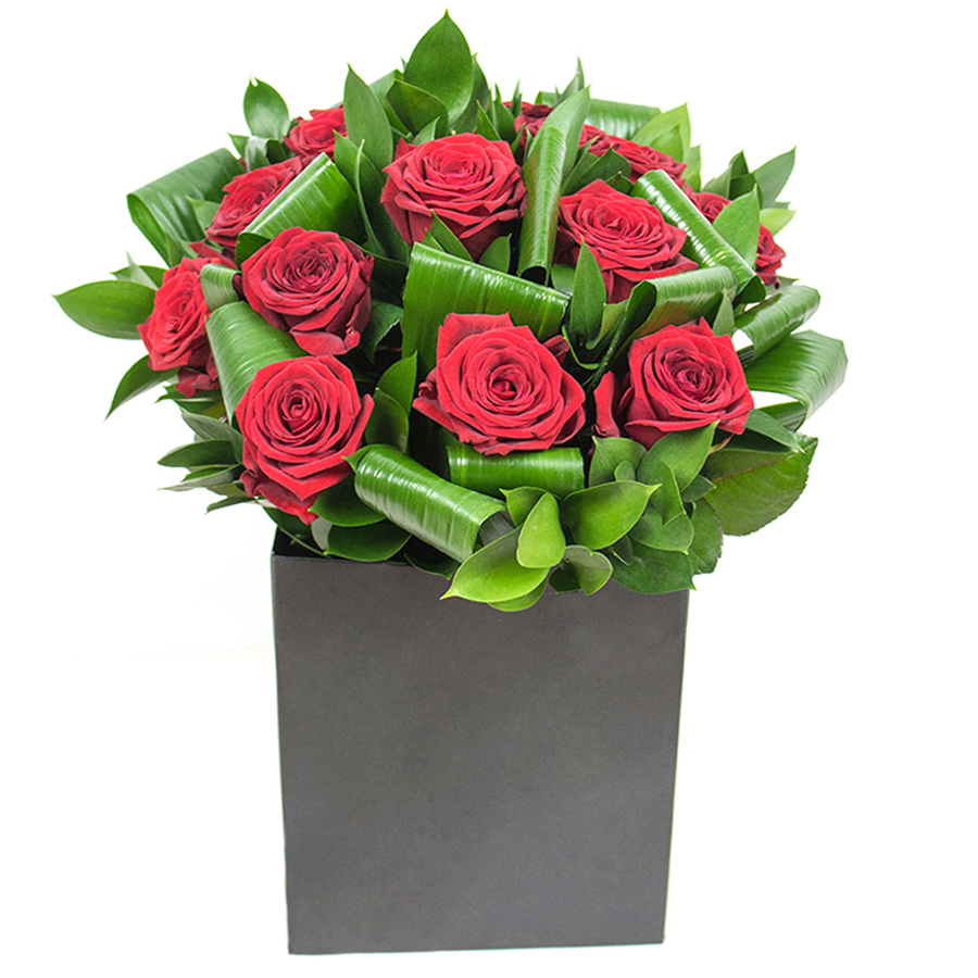 Our Beautiful Red Roses with Lush Greenery bouquet is designed to captivate. Featuring radiant red roses, fresh aspidistra leaves, and graceful ruscus, this arrangement exudes elegance and style.